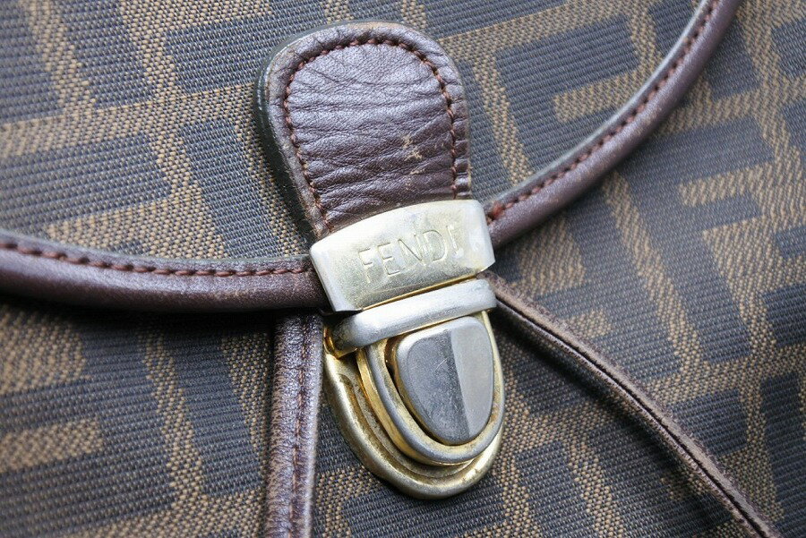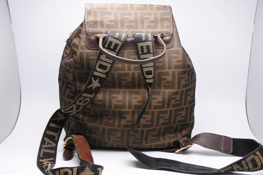 FENDI フェンディ ズッカ柄 リュック バックパック ブラウン ゴールド金具 カバン t364-4【中古】