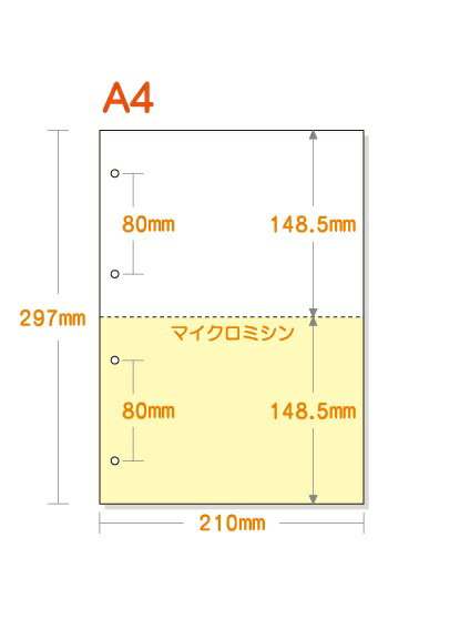 A4 ミシン目入り用紙 2分割 カラー[白/黄] 4穴あり【5,000枚】マイクロミシン○5,000枚