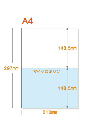 A4 ミシン目入り用紙 2分割 カラー[白/青]【5,000枚】マイクロミシン○5,000枚