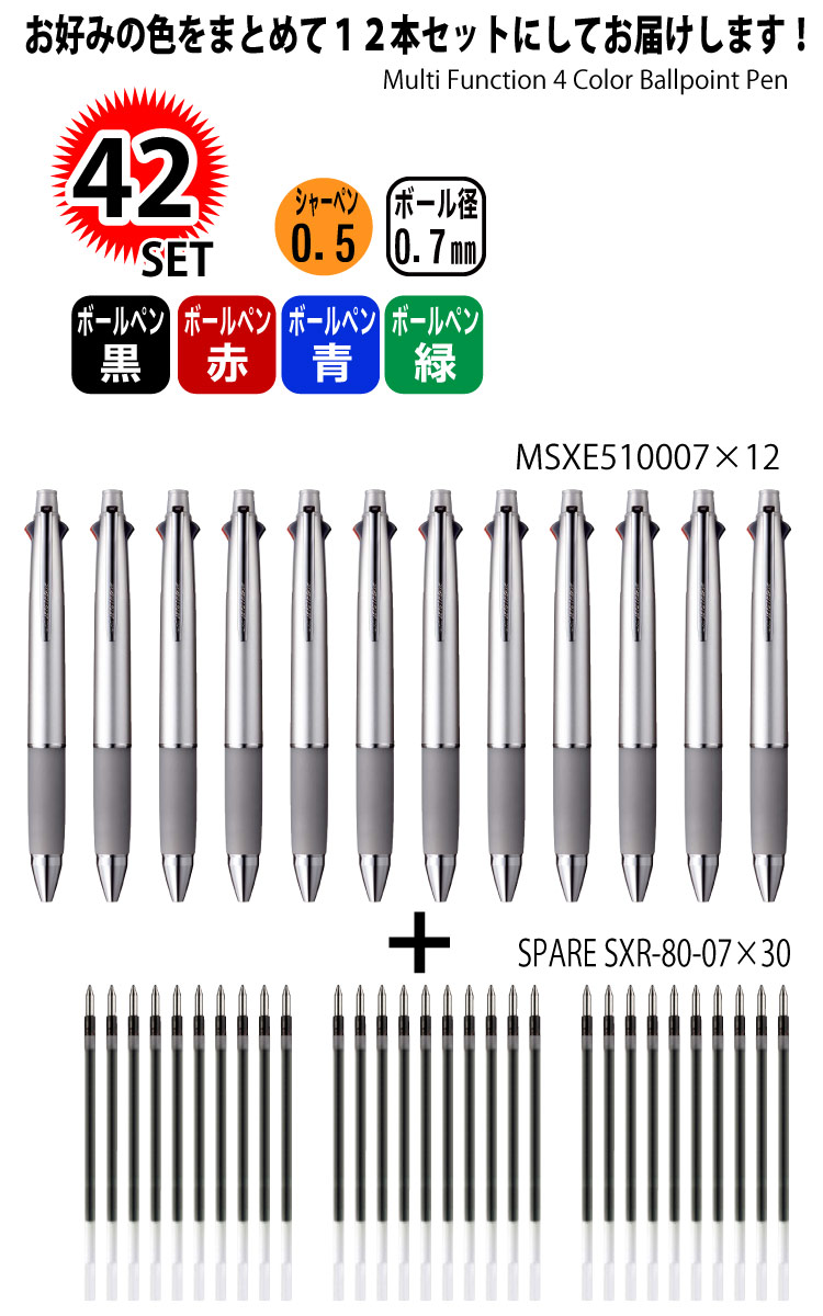 【お買い得セット12本+替え芯30本】シルバー0.7ミリ 【メール便送料無料】ボールペン ジェットストリーム ペン 文房具 三菱鉛筆 Uni 多機能ペン ジェットストリーム 4&1 MSXE5-1000 0.5mm 名入れは出来ません 敬老の日 ギフト 敬老 プレゼント