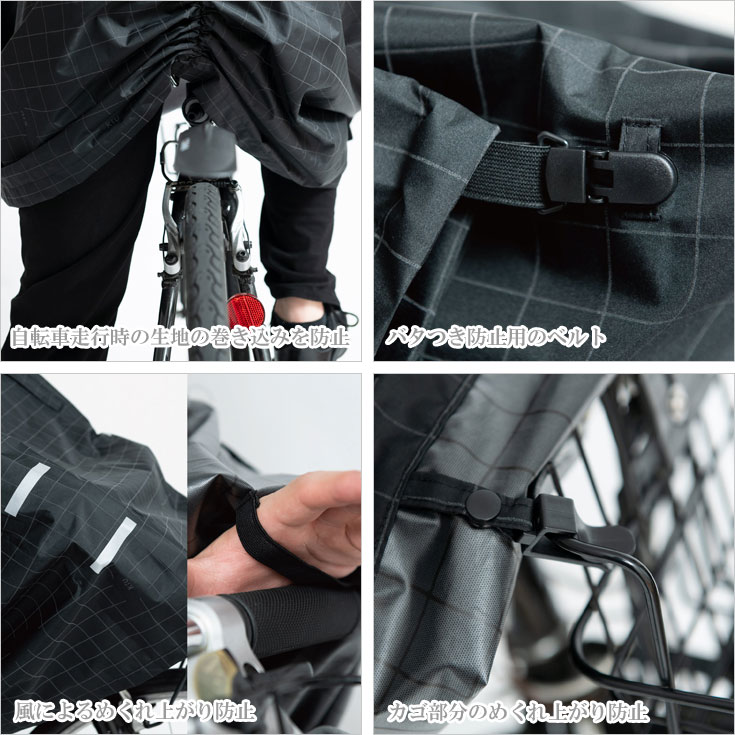 雨の日もスムーズに自転車に乗れるよう、様々な機能にこだわったレインポンチョです。