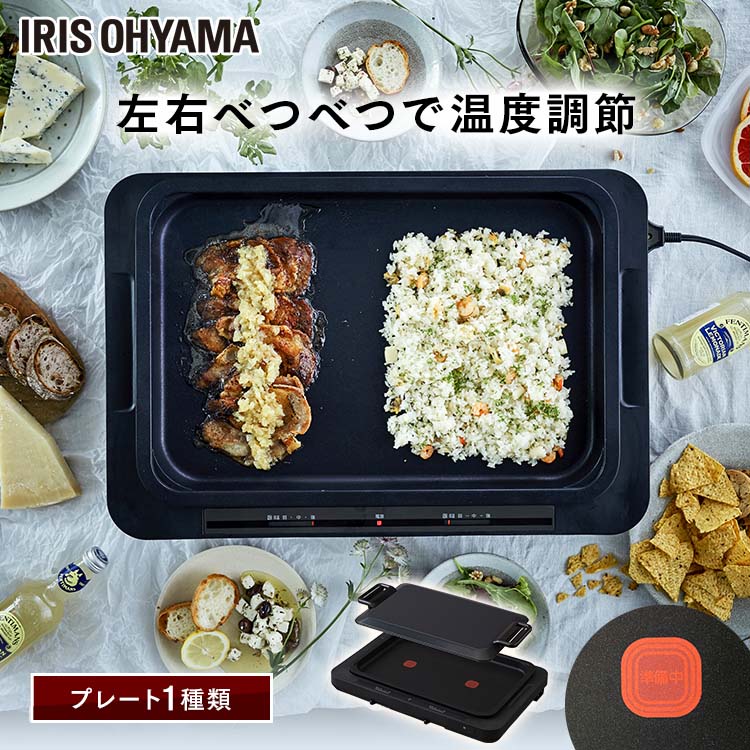 ホットプレート 左右温度調整 1枚 ブラックホットプレート 温度調節 料理 食卓 焼く 保温 黒 アイリスオーヤマ