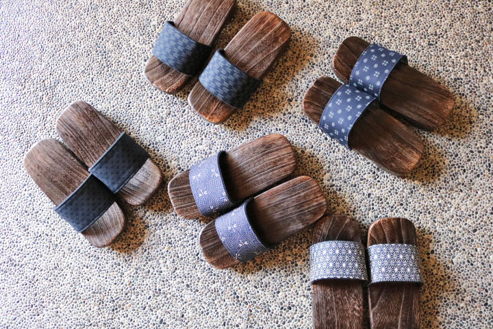落ち着いた和柄と幅広の履きやすさ、 肌触りが魅力の桐焼磨きサンダル。