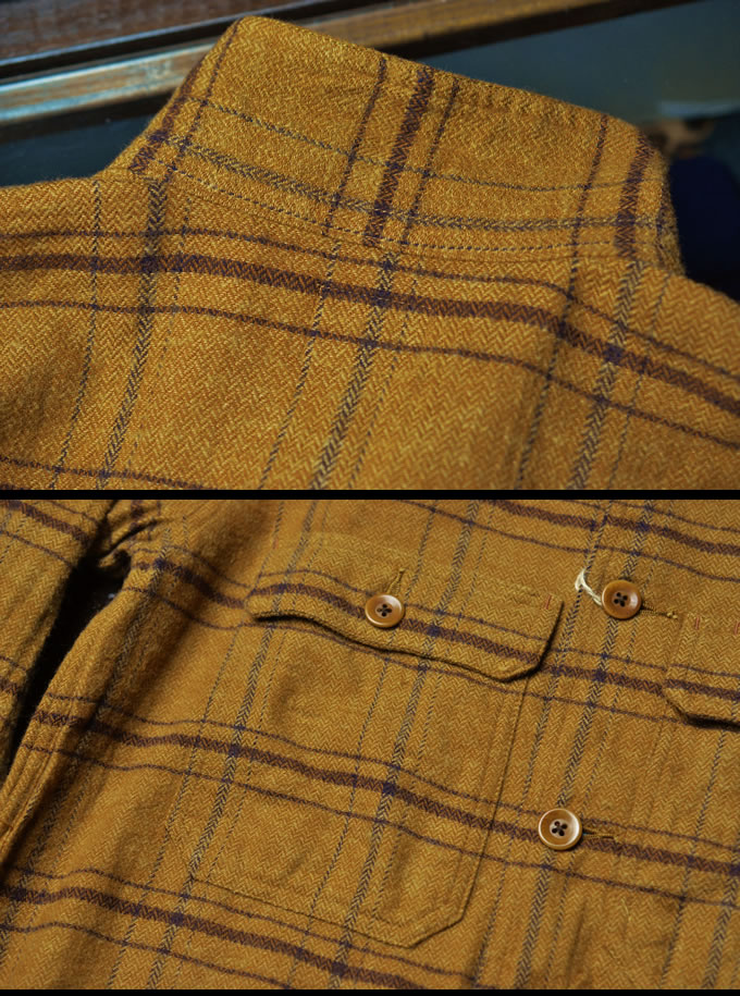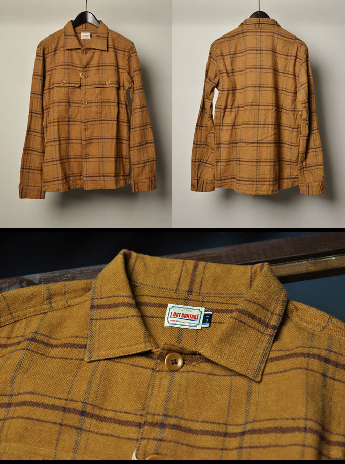 [ lost control ] ユーティリティーチェックシャツ / Utility Check Shirts color : Brown Base material : Cotton100% size : [ 製品洗い(天日干し) ] 1-[ バスト100cm / ウエスト98cm /裾周り100cm / 着丈69cm / 袖丈62cm / 肩幅43cm ] 2-[ バスト104cm / ウエスト102cm /裾周り104cm / 着丈70.5cm / 袖丈63.25cm / 肩幅44.5cm ] 3-[ バスト108cm / ウエスト106cm /裾周り108cm / 着丈72cm / 袖丈64.5cm / 肩幅46cm ] 4-[ バスト112cm / ウエスト110cm /裾周り112cm / 着丈73.5cm / 袖丈65.75cm / 肩幅47.5cm ] ◆ ミリタリーシャツをベースに制作されたユーティリティーシャツ ◆ 使い勝手の良い大きめのポケットにゆったりとしたシルエットバランス ◆ 肌触りの良いチェック生地が全体をまとめ上げている ◆ 袖開き部分はリングドットでの開閉式 ◆ シャツジャケット的にも使えるバランスになっている