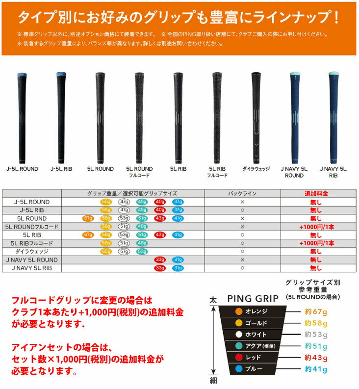 ●Assembled in Japan 標準グリップ ●PING J5L Rib(標準) 特注カスタムクラブをご注文のお客様へ 特注品につき代金先払いとさせて頂きます。