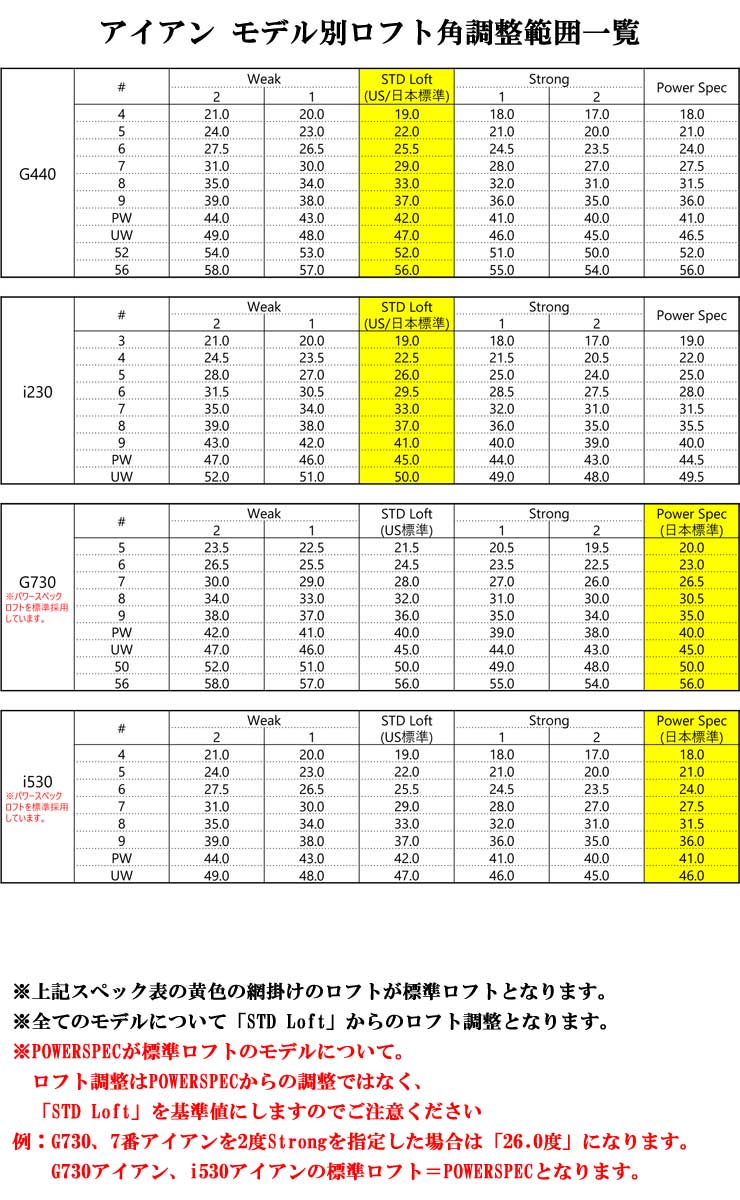 ※上記スペックは、スタンダードライ角(ブラック)・標準クラブ長のものです。