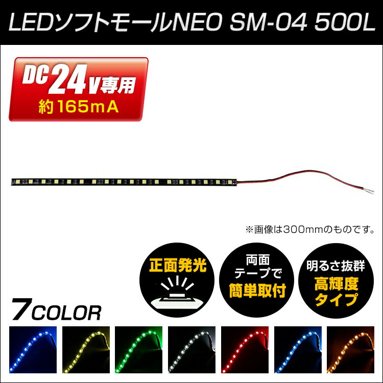 【マーカーランプ】LEDソフトモールNEO SM-04 500mm 24V専用【トラック用品】 LED ブルー イエロー グリーン ホワイト レッド アイスブルー アンバー 青 黄 緑 白 赤 琥珀 正面発光 行両面テープで簡単取付 高輝度タイプ